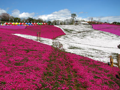 芝桜は湿気に弱いらしいですが、私が行った時点では7~8部咲きらしく、桜と違って花の盛りは長いので安心してください。