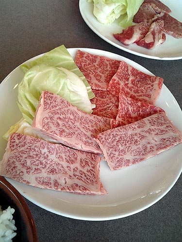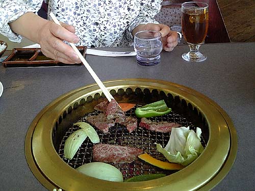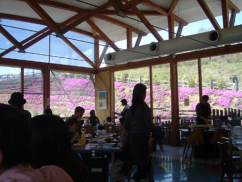 ここでは豊後牛を自分で焼肉して食べられるということで、食べてみることに♪ レストランの中はこんな感じ。外に咲いている芝桜が綺麗。