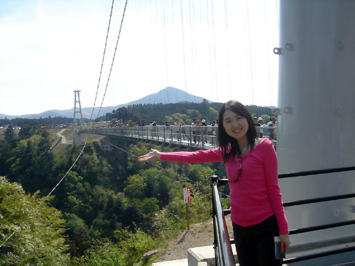 上カルビと上ロースを注文。 お味は、カルビは柔らかいけどしっかり食感があってお肉好きには堪らないって感じ? ロースもとろけるほど柔らかですが食べ応えもあり、 油が驚くほどあっさりしていてしつこくない! ほんとに美味しくて母と二人で黙々と焼いて食べました(笑) レストランを出て売店でデザートを購入。 地どり卵のアイス。激ウマー そして町田バーネット牧場から約10分で夢大吊橋に到着。 九重夢大吊橋は長さ(390m)・高さ(173m)共に日本一! ちなみに幅はわずか1.5m・・・ 入場料は往復で500円。 早速渡ろうと橋に乗ってみると、