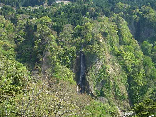 ここまでの運転で結構疲れていたのもあって、かなり気持ち悪くなってきました。 母はそれ以上に気持ち悪くなったようで、わずか5mで引き返しました(T▽T)尸~~SOS でも橋からは滝や新緑が本当にきれいでした。