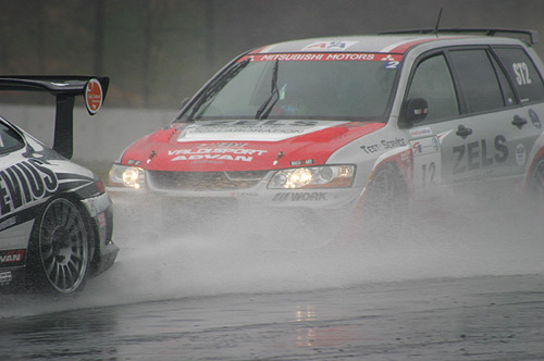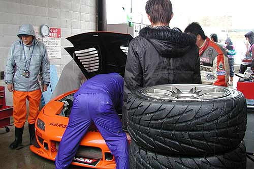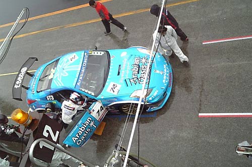 ST2クラスはもちろん1位は#11、2位#ゼルスランサーEVOワゴンMR。 レース終了後、#11の(名物)監督さんが一生懸命マシンを拭いていらっしゃいました。 マシンへのねぎらいを込めて、いつも丁寧に拭いていらっしゃいます。 が、この後、積車に乗せようとマシンをピットから出したのが早すぎて 積車が来る間、マシンをびしょ濡れにさせるとってもおちゃめな監督さん