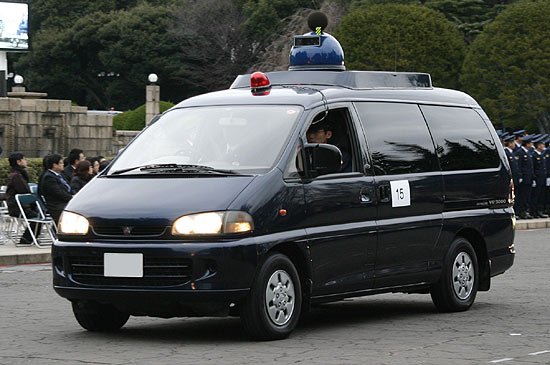 集音機をつけた車。右翼の街宣車とかの発見・取締りに使います。